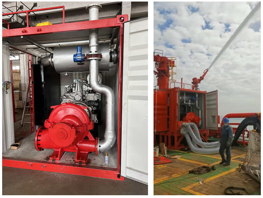The installation and commissioning of the 1,200-square-meter mobile fire monitor skid for Offshore Oil no.645, 643, and 683 ships has been completed!
